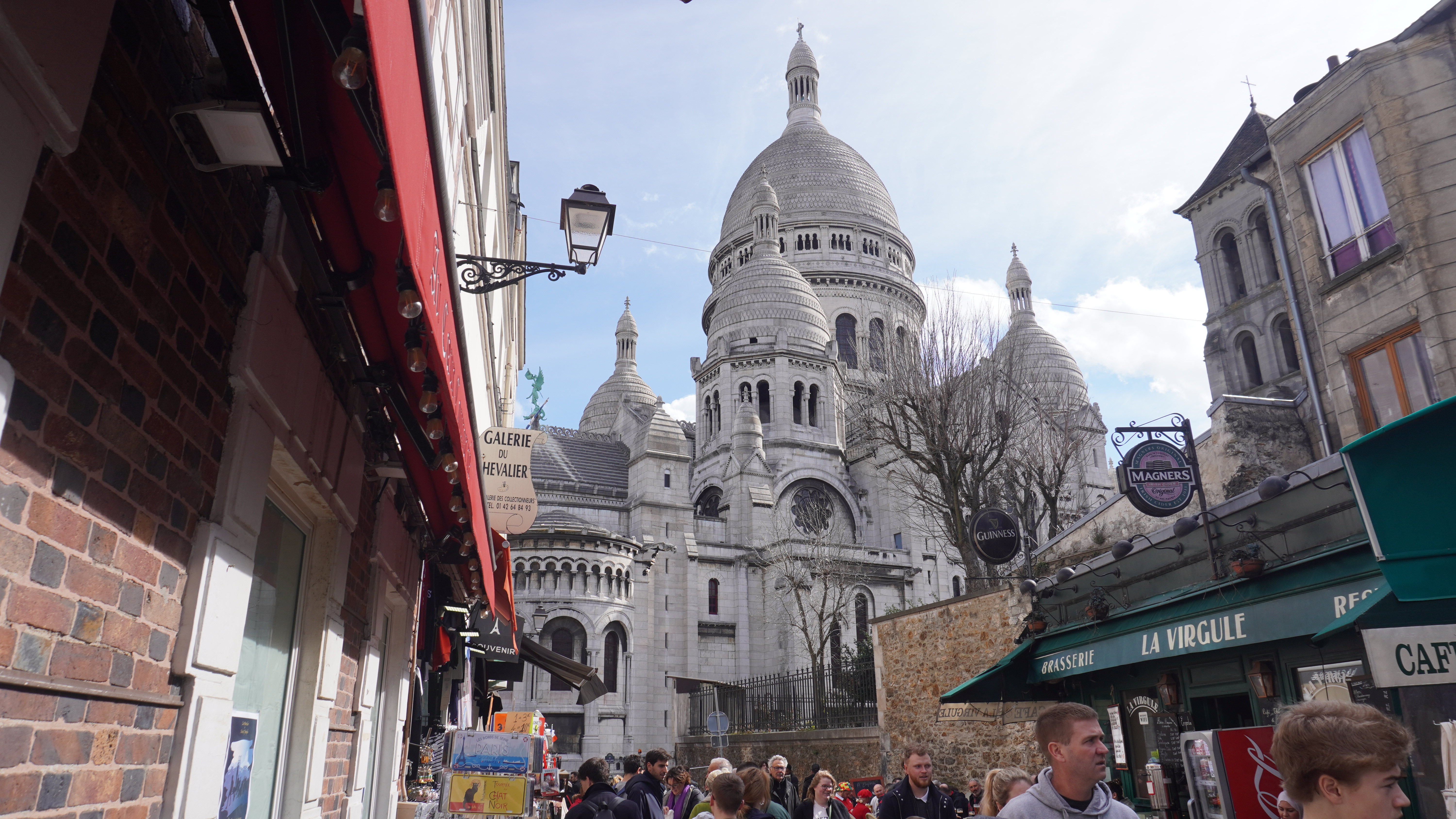 Otra de las imágenes más características de París es la Basílica del Sagrado Corazón y no nos extraña. No la habíamos visitado en nuestra anterior visita a la ciudad y fue un error garrafal. Desde la estación de metro hasta llegar arriba nos dejó todo boquiabiertos. Calles llenas de tiendas, restaurantes, mucho ambiente… Nosotros subimos andando hasta la iglesia, aunque si lo preferís, por menos de 3€ podéis llegar arriba con un funicular que tarda 1 minuto y 30 segundos, y se compra el billete allí mismo. Las vistas desde arriba son espectaculares, no se ve la Torre Eiffel pero la estampa de París es digna de admirar. Si lo deseáis también podéis entrar a la Basílica, nosotros tampoco lo hicimos porque había una fila considerable y no queríamos perder toda la mañana.
