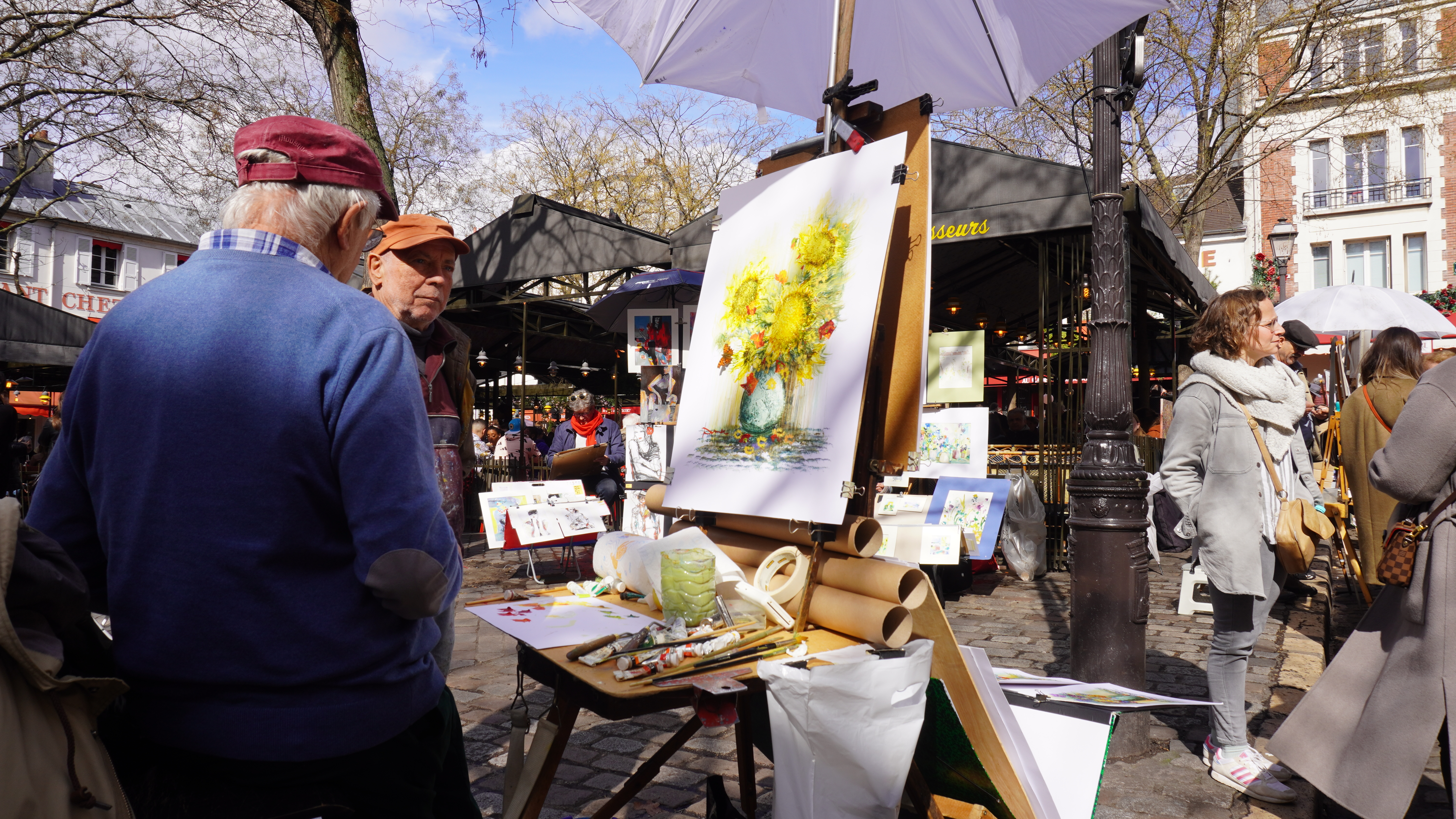 Seguimos por ahí arriba callejeando y legamos a la plaza de los pintores, oficialmente conocida como Place du Tertre. Era la hora de comer y no cabía ni un alma y el ambiente que había era brutal. Así que si visitáis esta zona, no podéis perdéroslo.