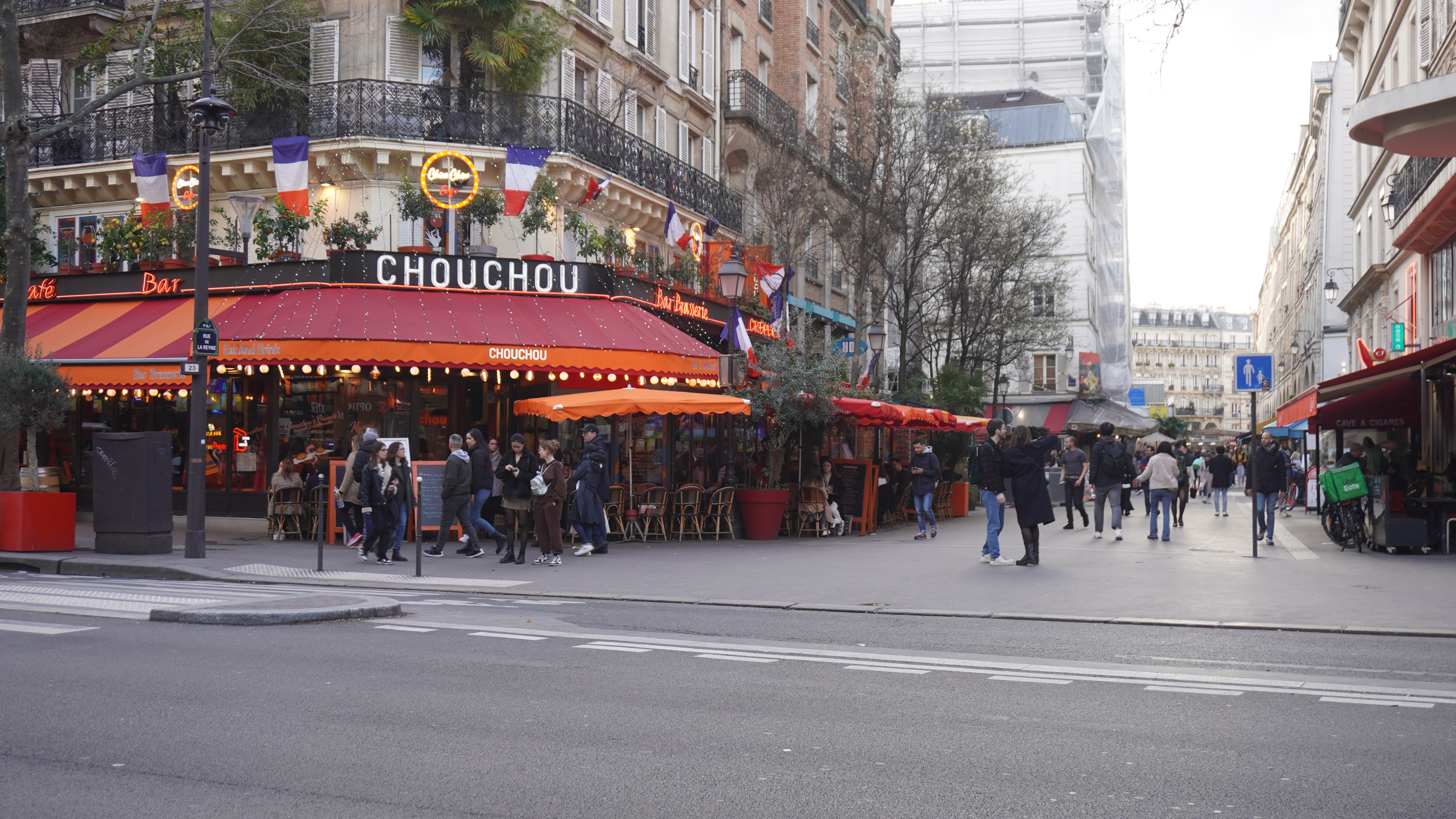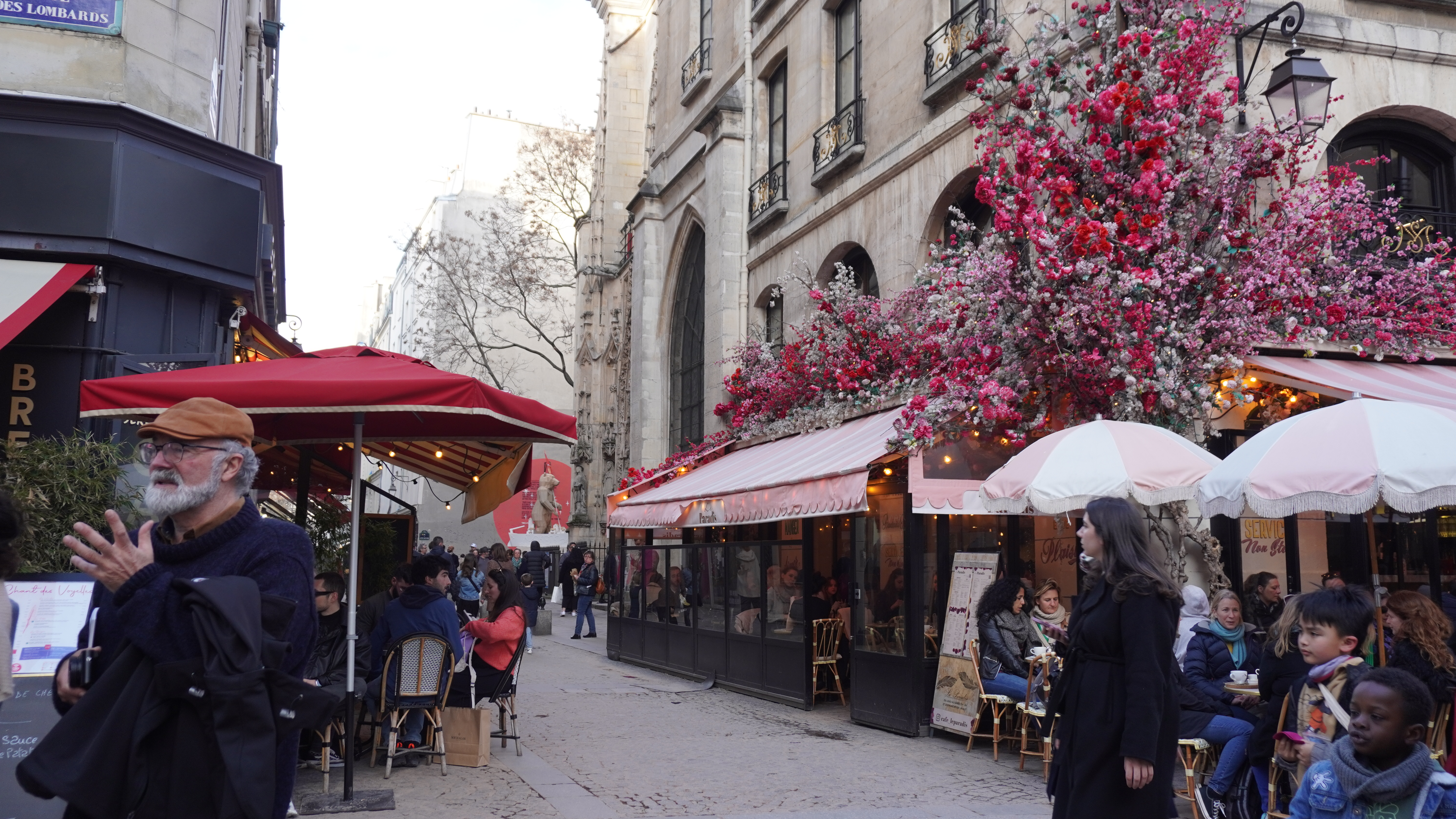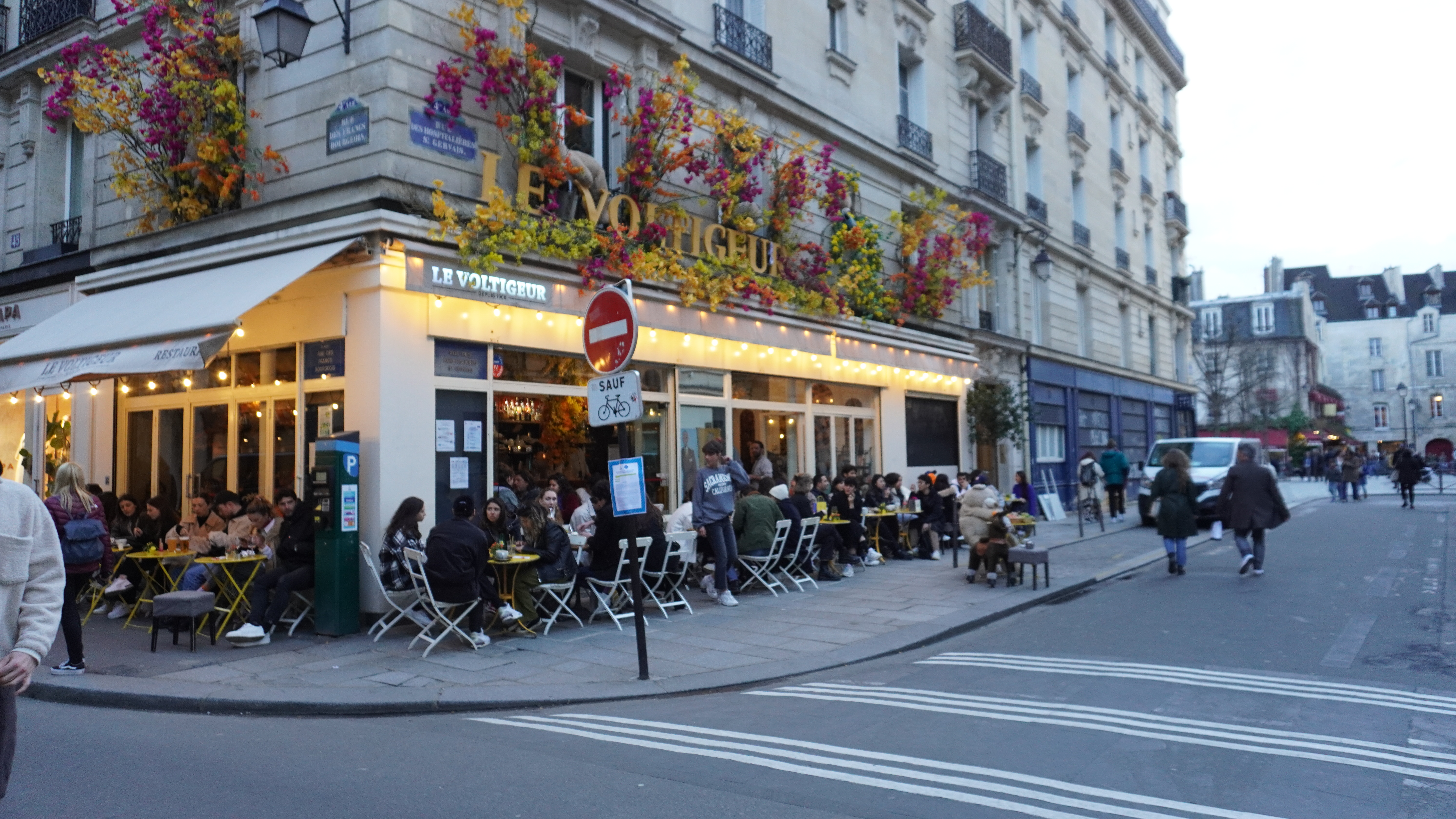 Después de haber visto el barrio y su infinidad de tiendas, decidimos poner rumbo a otro barrio de moda en la ciudad. El barrio de Le Marais. Es uno de los más antiguos de París pero en los últimos años se ha ido modernizando de tal forma que ahora es el barrio gay de la ciudad. Sus calles estan decoradas, sus cafés y restaurantes llenos de adornos florales han hecho de este barrio uno de los favoritos de los turistas. Y no es para menos. Algunas de las fotos más bonitas que tenemos en terrazas estan hechas en este distrito. No pudimos tampoco sentarnos a tomar nada, seguramente el hecho de que fuera sábado e hiciera buen tiempo tuvo algo que ver en que estuviera todo a rebentar y no hubiera ni un hueco en las terrazas. Así que si tenéis la oportunidad, os lo recomendamos.