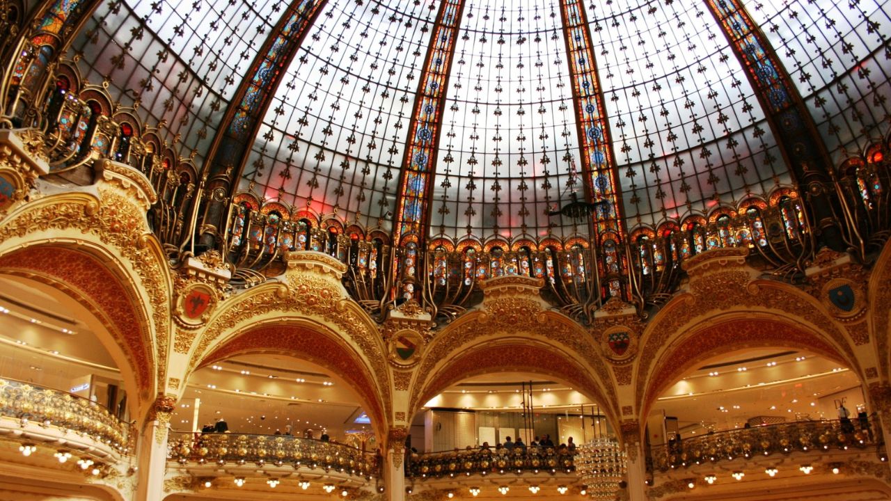 La verdad es que la visita a estos grandes almacenes merece mucho la pena, ya no por las tiendas en sí, sino por la majestuosidad del edificio y la decoración y por supuesto, su terraza panorámica. Si estáis buscando un mirador gratuito en París estáis en el sitio adecuado. Solo tenéis que subir a la planta superior y desde allí tendréis unas vistas privilegiadas al skyline de París. Justo enfrente está la fachada de la Opera Garnier, pero más allá veréis también la Torre Eiffel o el Sacre Coeur.